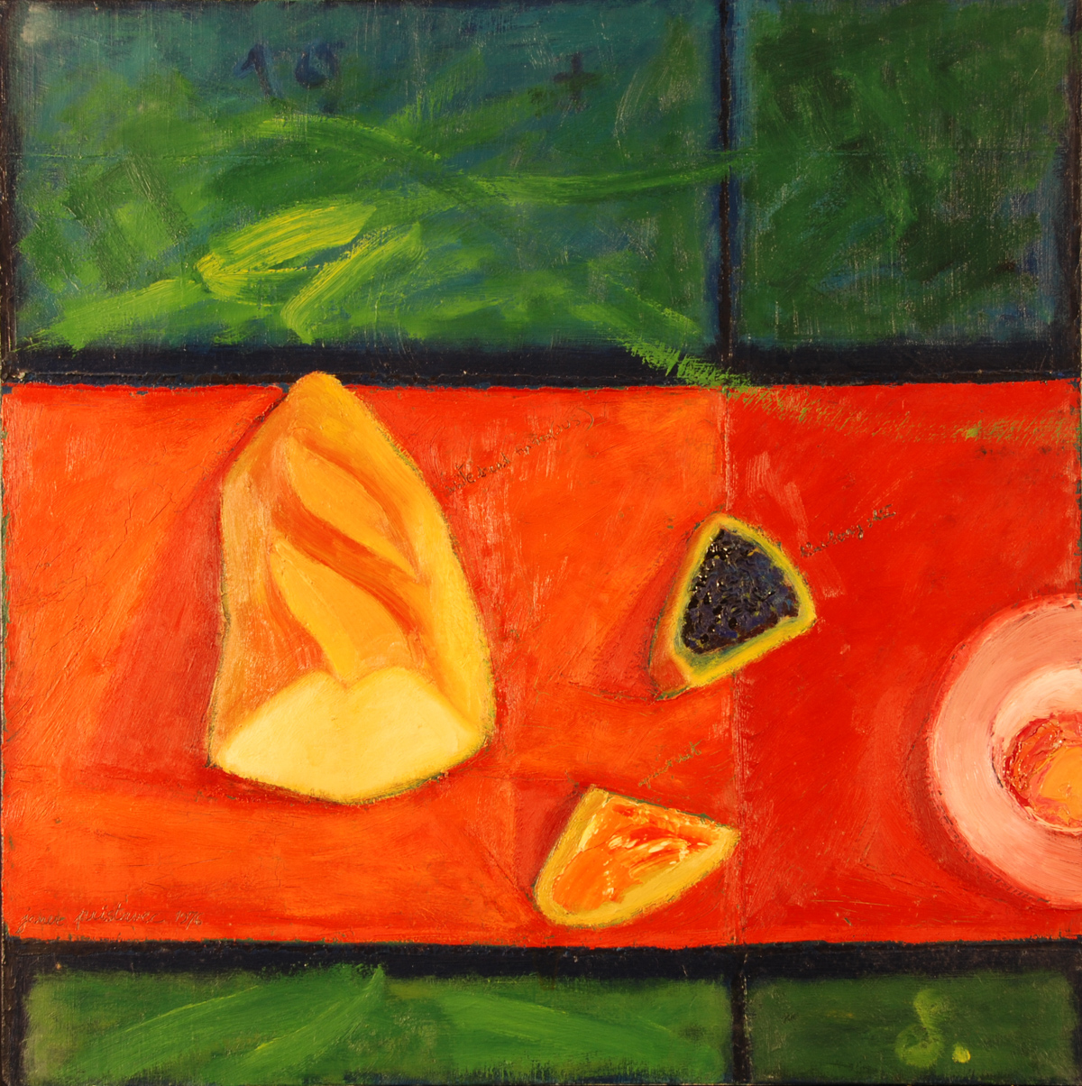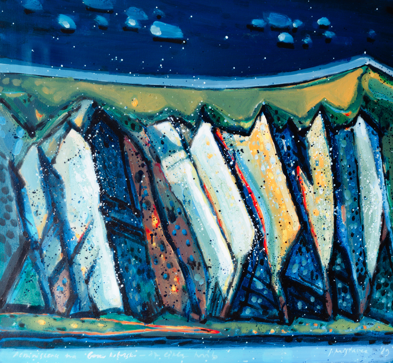 From 1980 onward, Pristavec engaged in graphic techniques (linocut, woodcut), as well as exploring color fields, deformed figures with erotic undertones, and painting Komodo dragons – the “Tuataromahia” series. He created several watercolor cycles on paper, such as the “Meljski hrib” series and coastal cityscapes. “Meljski hrib” was exhibited at the painting competition “Ex tempore ‘83”. Under the influence of the Neue Wilde movement, he developed expressive large-format figuration on crumpled paper, conveying ritual, tribal, and mythological messages. He also created an extensive series of works exploring color relationships and effects, where the crumpled paper surface served as a dynamic field that encouraged optical depth and emotional engagement.